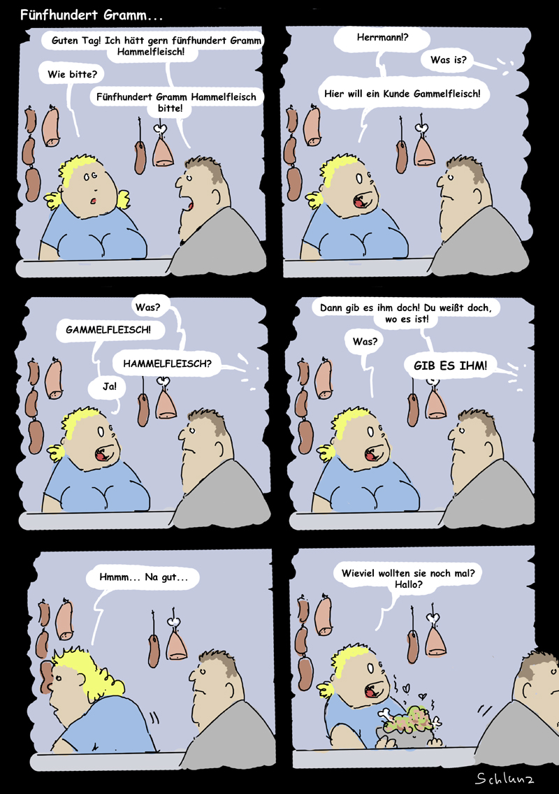 So bringen sie den ganzen Brei nun rüber, in die Metzgerei.