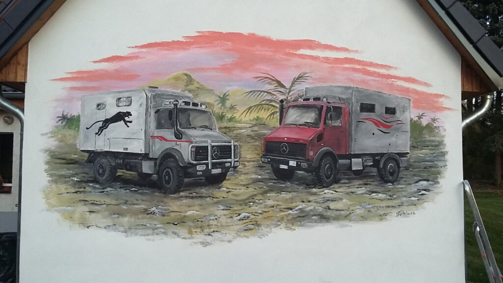 Unimogs auf Giebelwand in Dankensen, Sachsen Anhalt - Auftragsarbeit