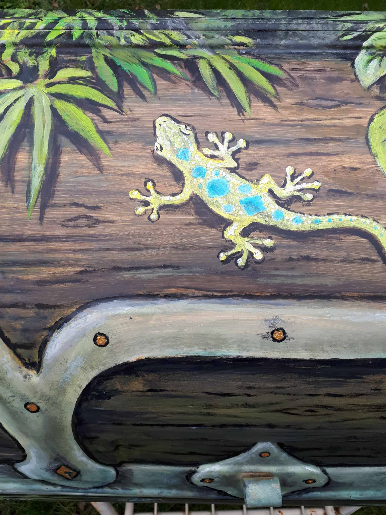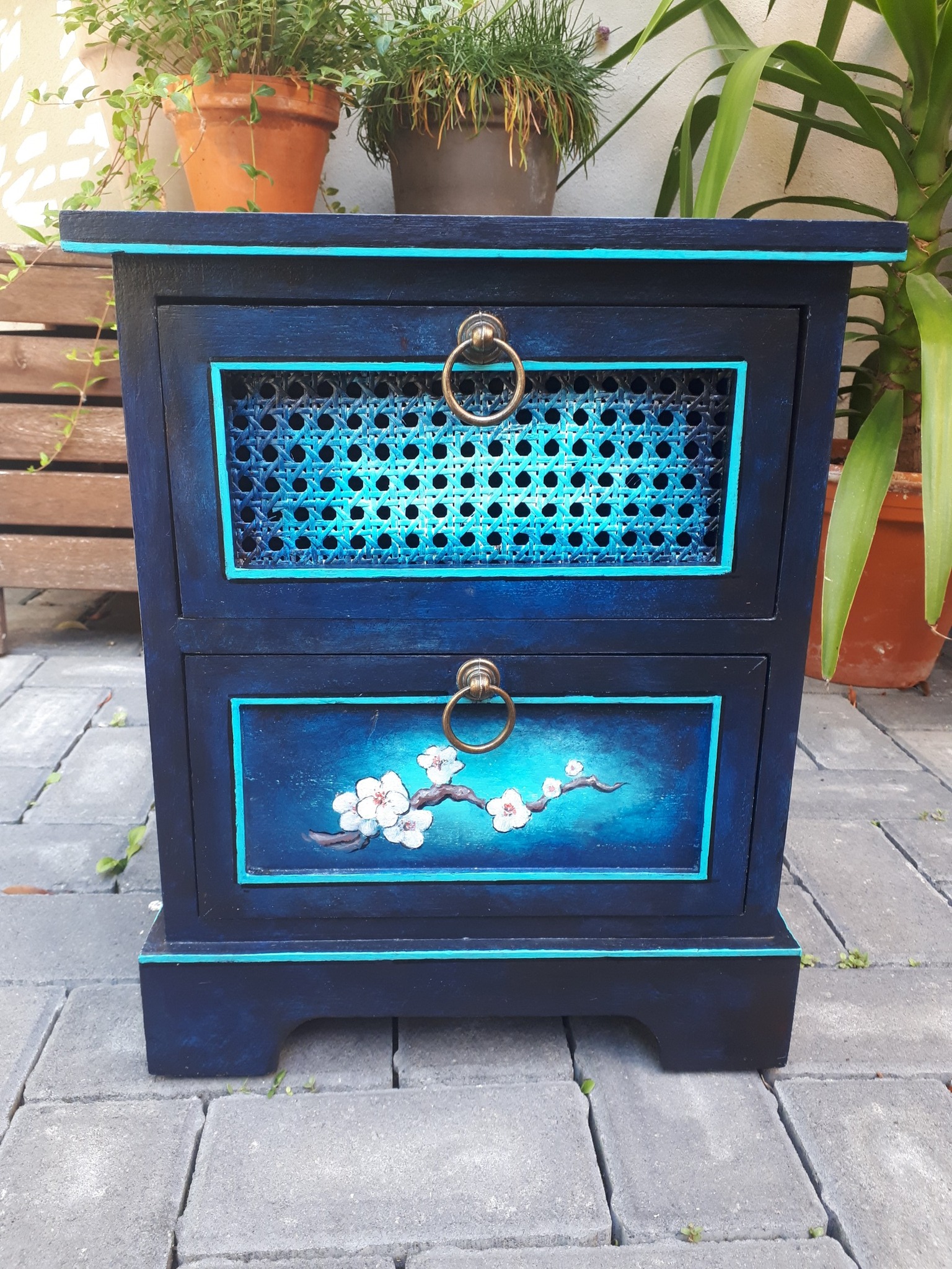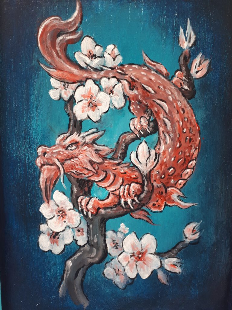 Kirschdrachen-Schränkchen – Acryl auf Massivholz – verkauft